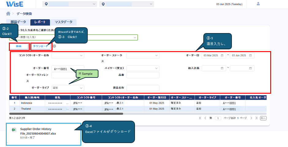 ①WisE TOP画面 > データ検索